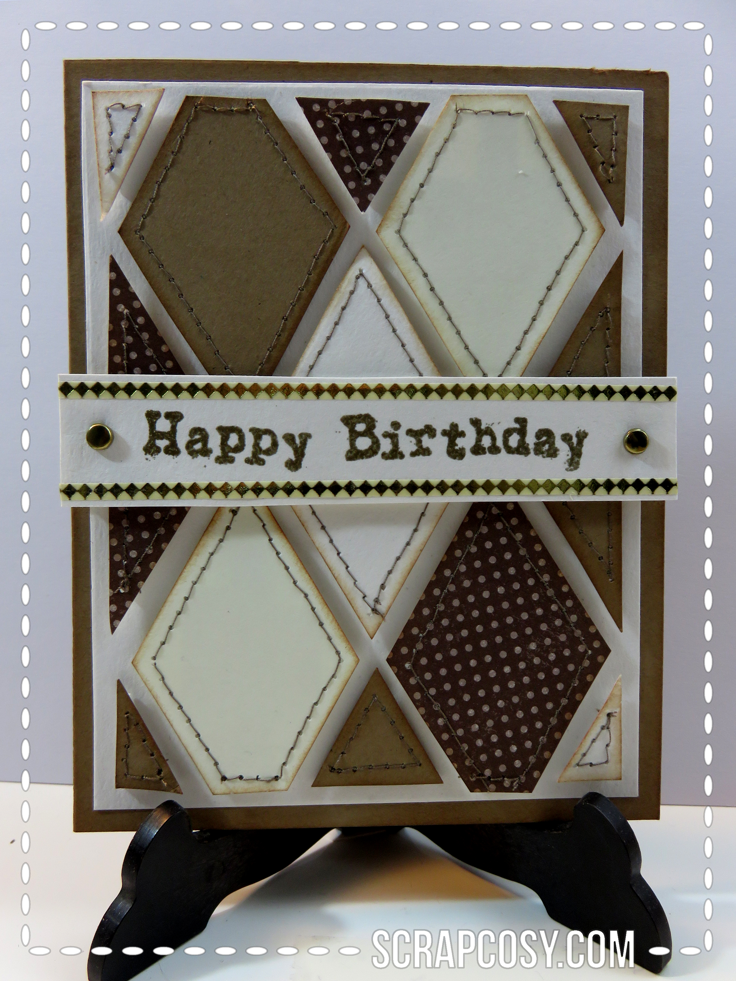 Hi everyone! Today I’ll show you how I made this Stitched Diamonds Happy Birthday card that I created for my Dad´s birthday. It is a card that took me some time to make it, and it involved sewing paper, which was something that I had wanted to do for quite some time. I hope you have fun while watching the video. Let me know what you think in the comments section below 😉 Enjoy!