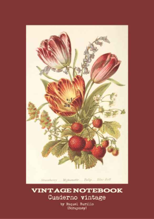 Vintage Notebook – Cuaderno Vintage: Dotted pages with botanical illustrations and a final page with tags / Páginas punteadas con ilustraciones botánicas y una con etiquetas.